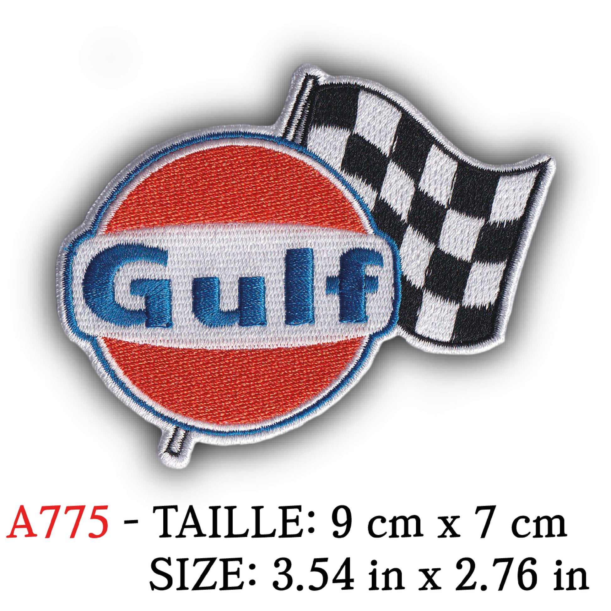 MAXIMUMPATCHES - Ecusson Patch Brodé Thermocollant - 9 cm x 7 cm - Automobile Drapeau Damier Course Race Gulf