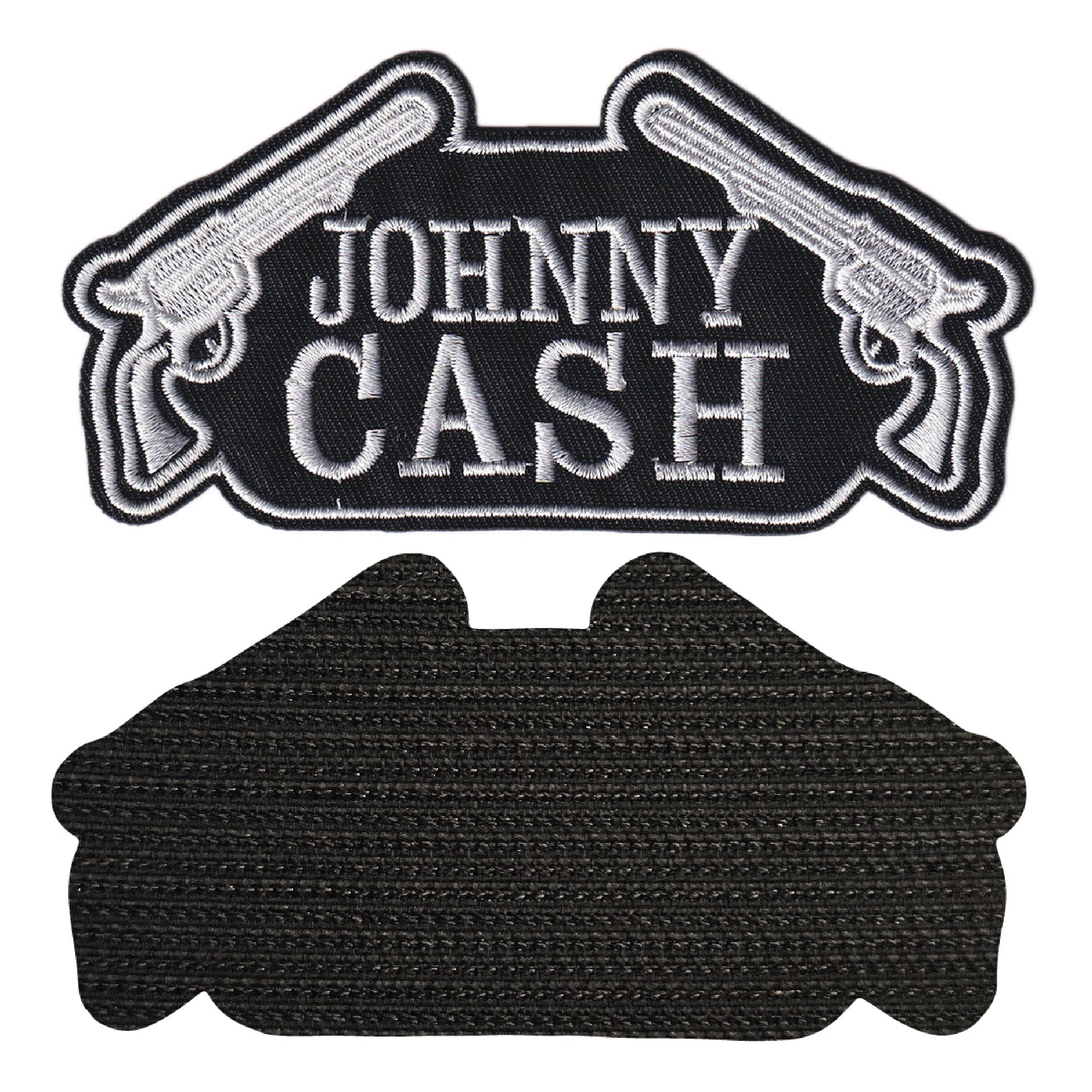 MAXIMUMPATCHES - Johnny Cash - 12,3 cm x 6 cm - Ecusson Patch Brodé Avec Scratch Cousu Au Dos + Carré Scratch A Coudre, Face Opposé 10 cm x 10 cm/Groupe Musique Métal Rock Punk Heavy Trash Blues