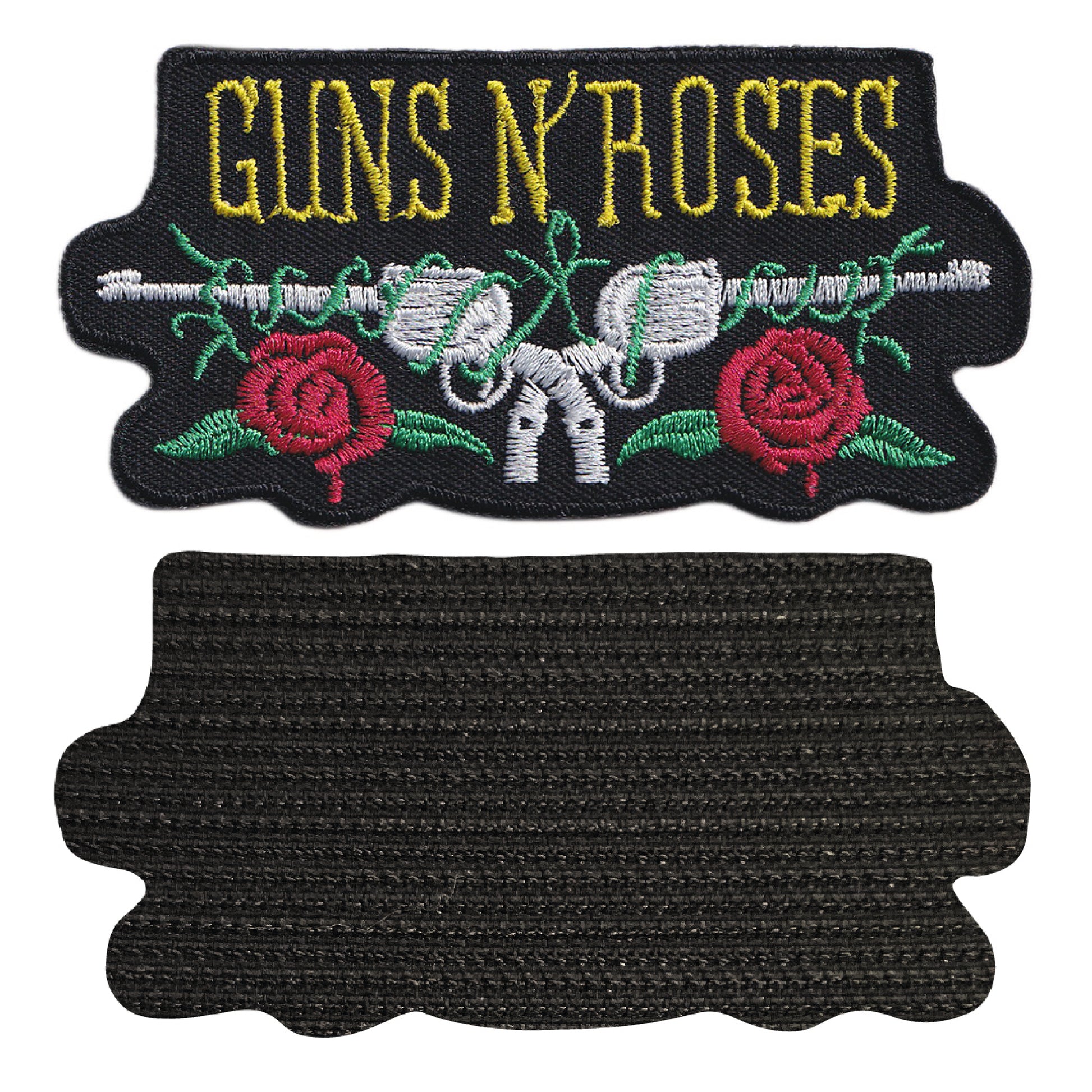 MAXIMUMPATCHES - Guns n roses - 10 cm x 4,8 cm - Ecusson Patch Brodé Avec Scratch Cousu Au Dos + Carré Scratch A Coudre, Face Opposé 10 cm x 10 cm/Groupe Musique Métal Rock Punk Heavy Trash Blues