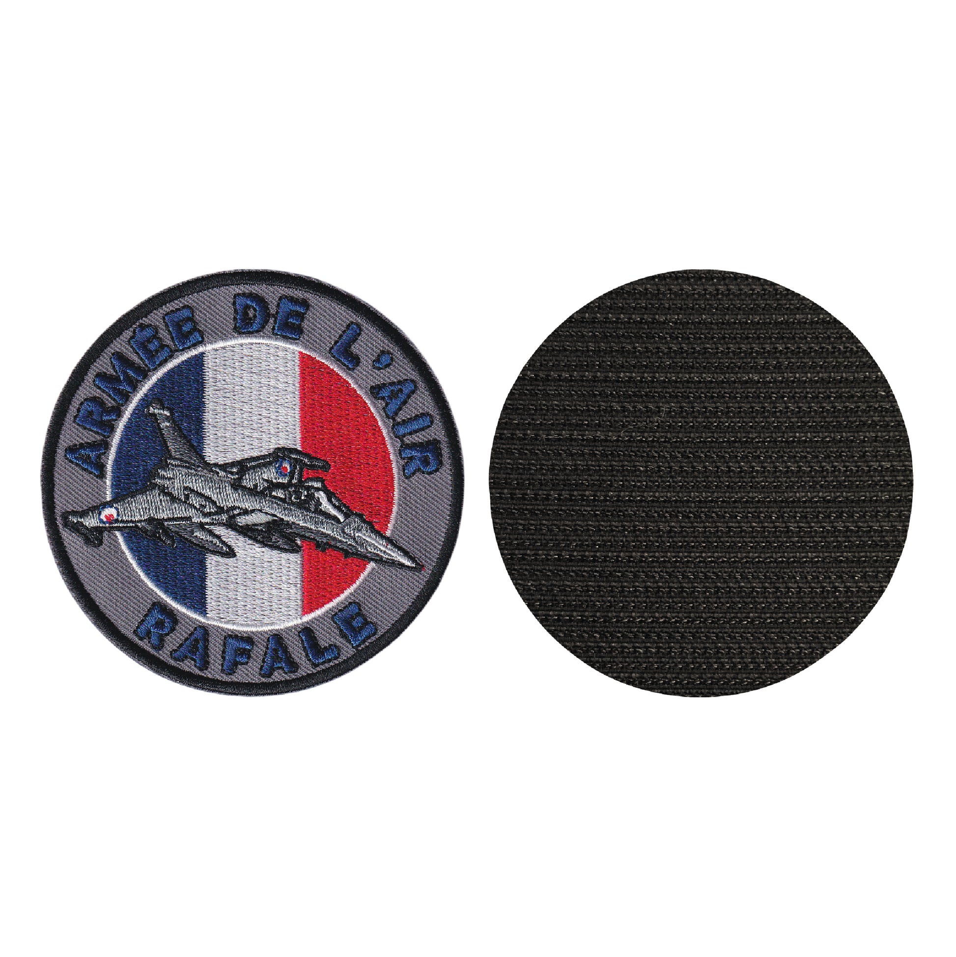MAXIMUMPATCHES - Diamètre: 8 cm - Ecusson Patch Brodé Avec Scratch Cousu Au Dos + Carré Scratch A Coudre, Face Opposé Offerte, Rafale chasseur armée air mer militaire