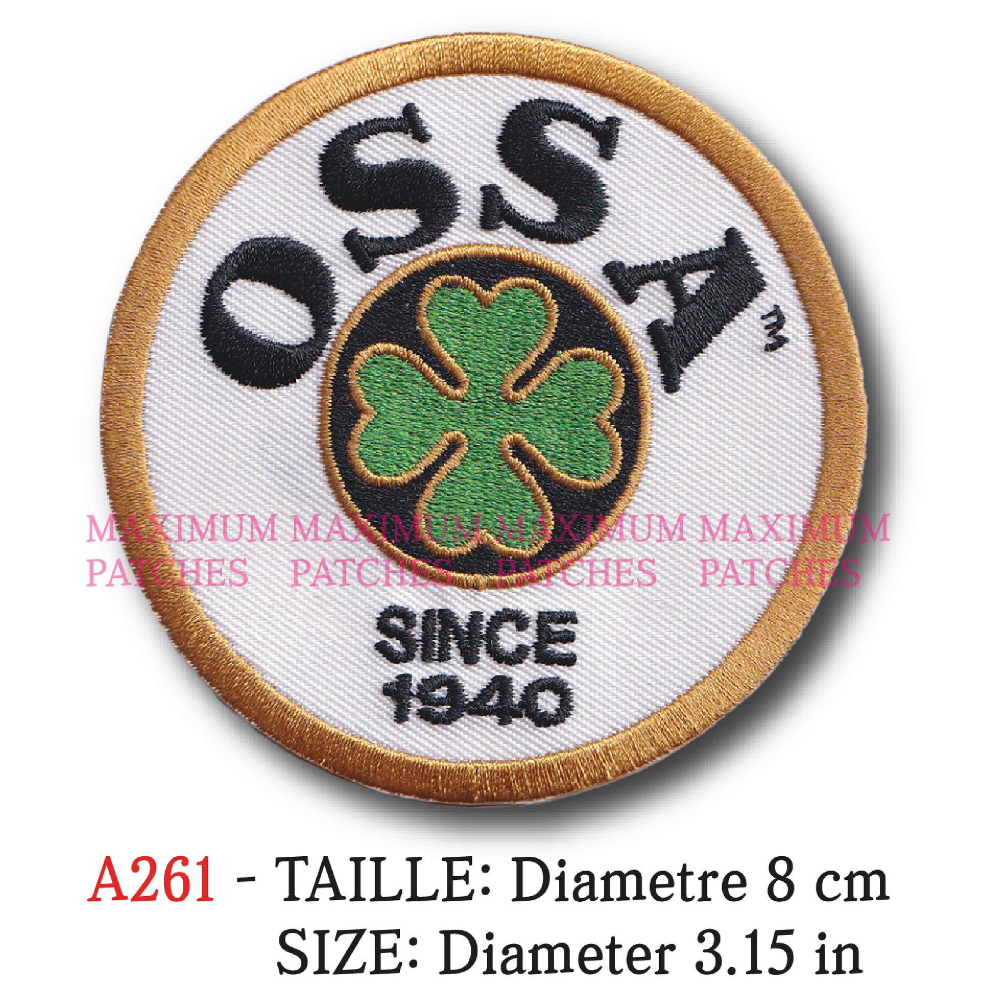 MAXIMUMPATCHES - Ecusson Patch Brodé Therrmocollant - Diamètre 8 cm - Moto Espagne Trial Cross Rétro Vintage Ossa
