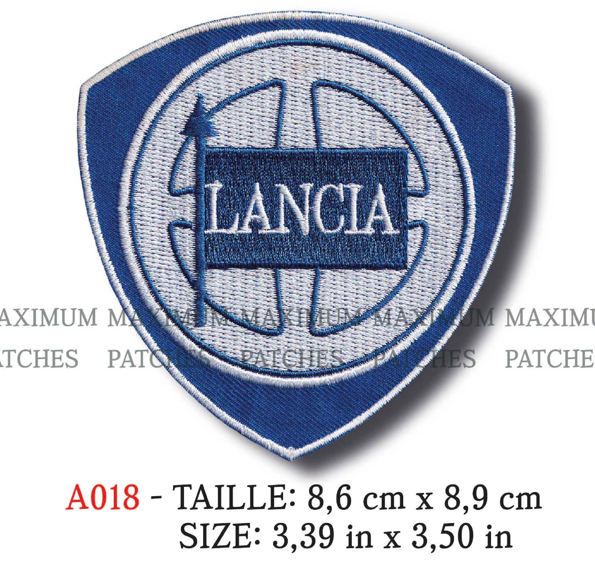 - La dimension de l'écusson, exprimé en centimètre se trouve dans le titre de la fiche produit