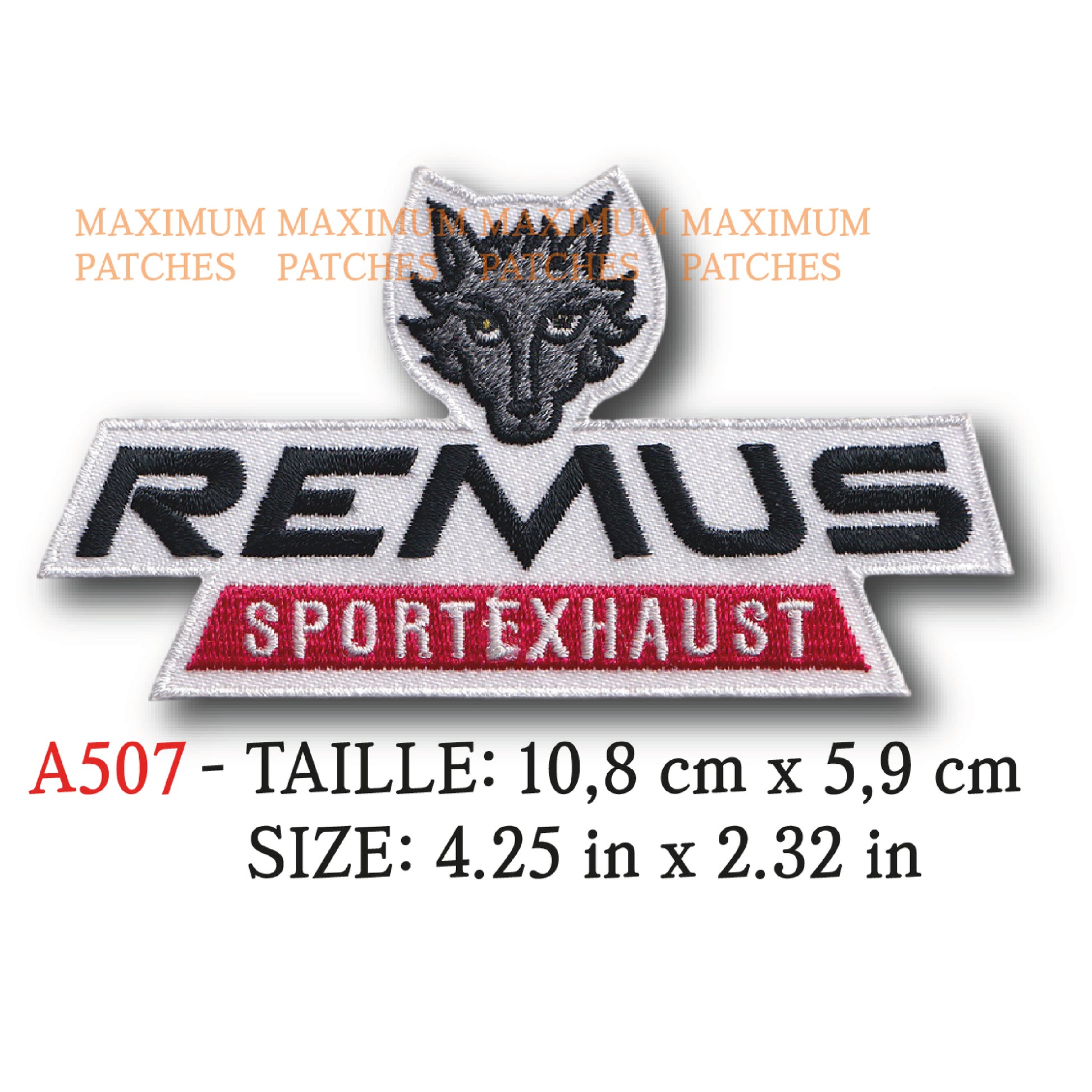 MAXIMUMPATCHES - 10,8 cm x 5,9 cm - Ecusson Patch Brodé Thermocollant - Echappement Pot Ligne Moto Compétition Sport