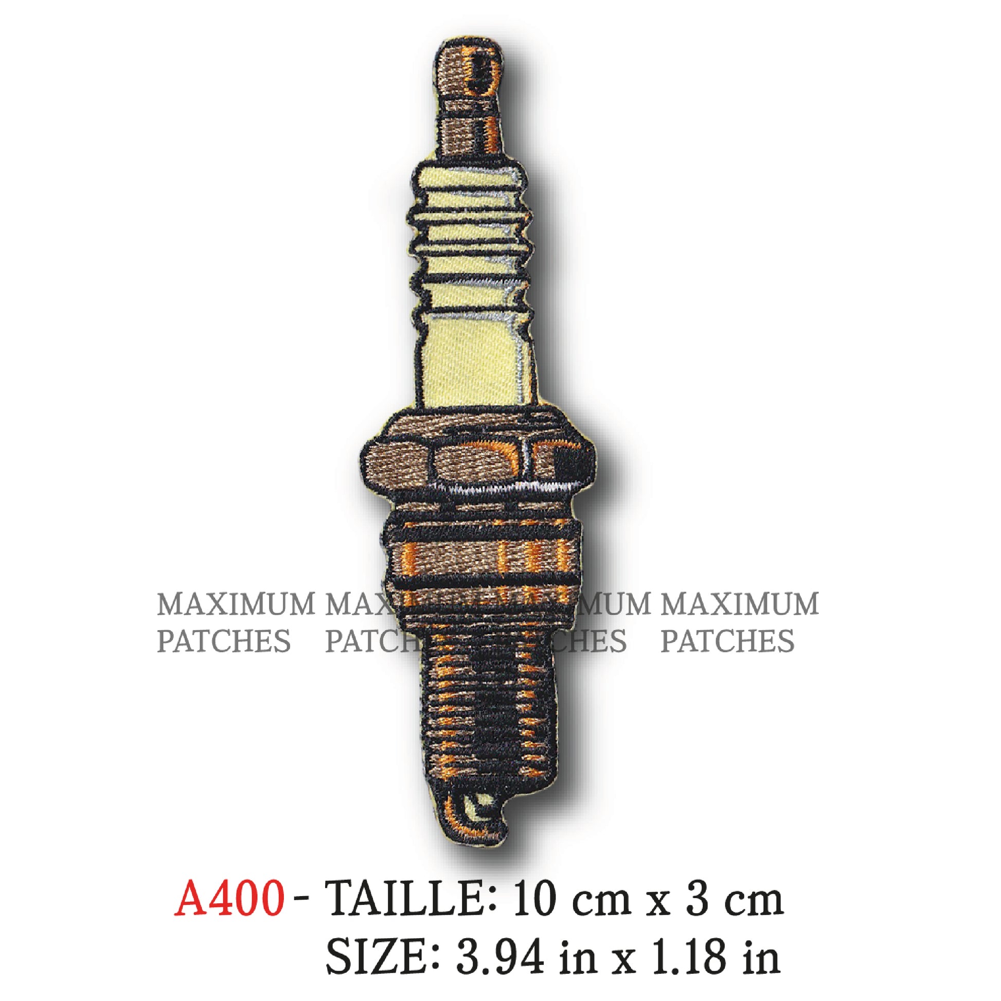 MAXIMUMPATCHES - 10 cm x 3 cm - Ecusson Patch Brodé Thermocollant - Bougie Spark Plugs Automobile Moto Bougie