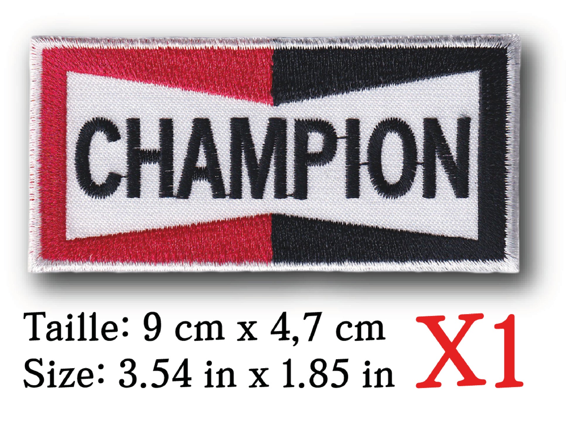 MAXIMUMPATCHES - Ecusson Patch Brodé Thermocollant - 9 cm x 4,7 cm - Automobile Moto Voiture Rétro Vintage Champion Bougie