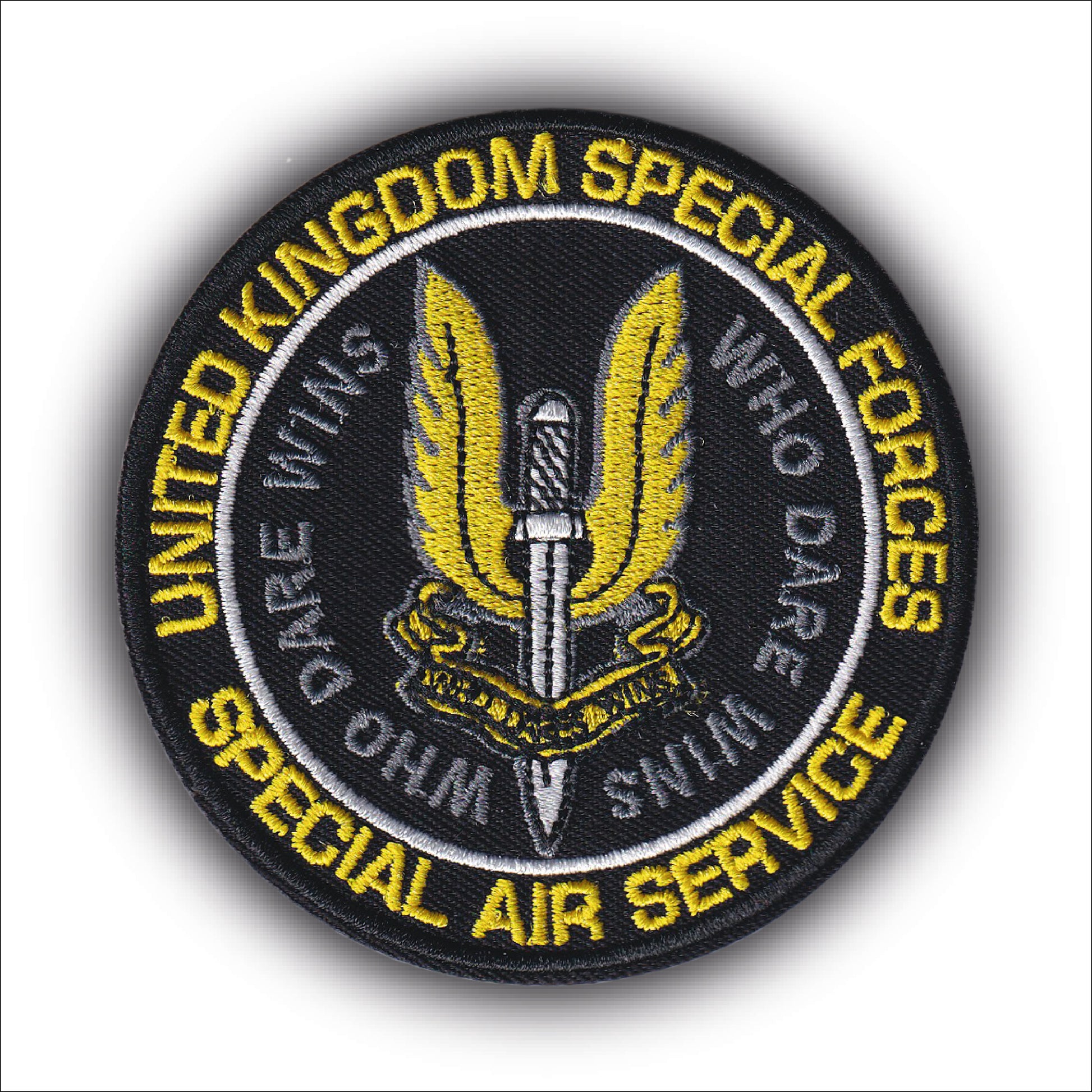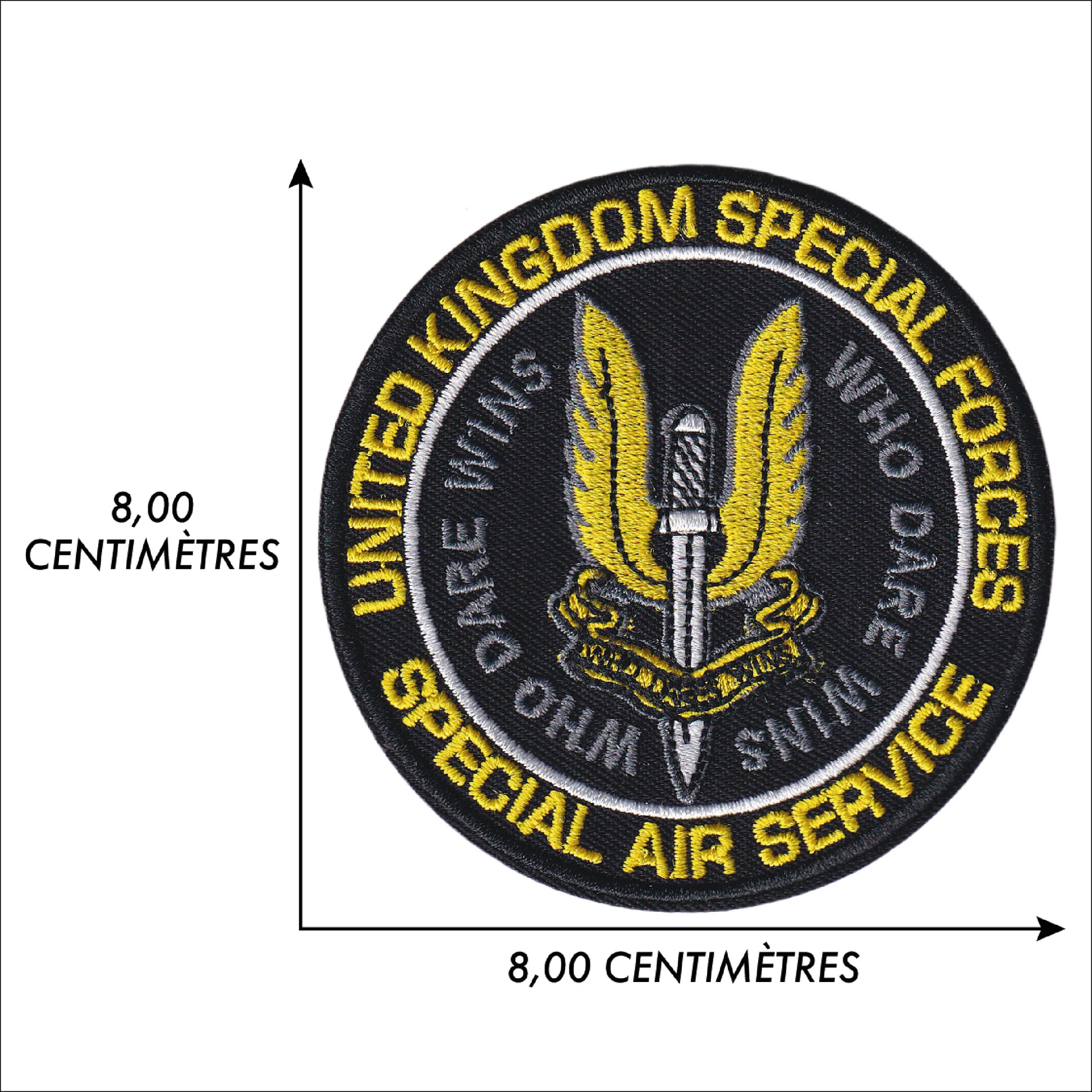 MAXIMUMPATCHES - Ecusson Patch Brodé Thermocollant - Diamètre 8 cm - Sas Forces Spéciales Commandos Royaume Uni Angleterre Armée Militaire Who dare wins