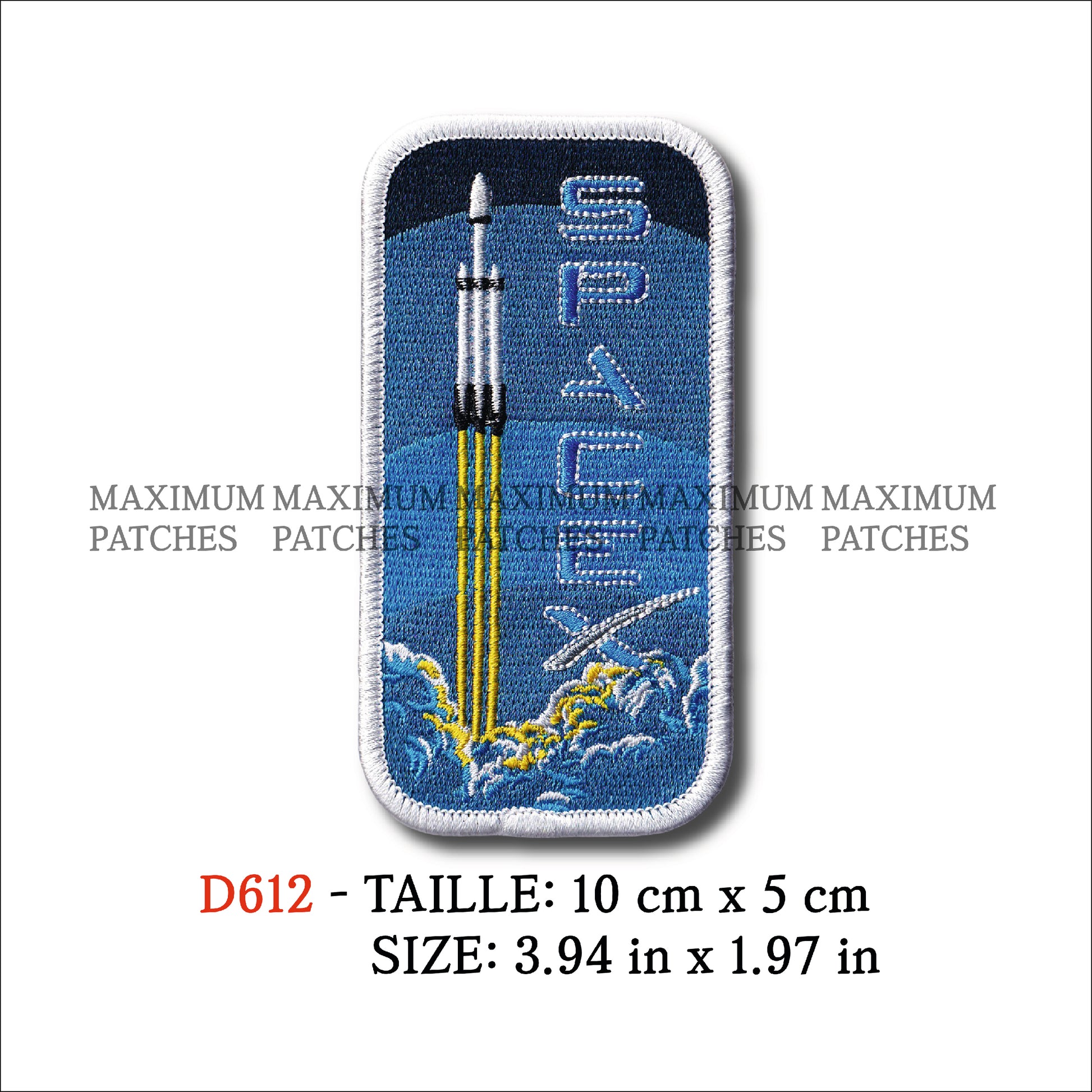 MAXIMUMPATCHES - Ecusson Patch Brodé Thermocollant - 10 cm x 5 cm - Navette Spatiale Fusée Mars Conquète Spatiale Ariane Lune Satellite super heavy