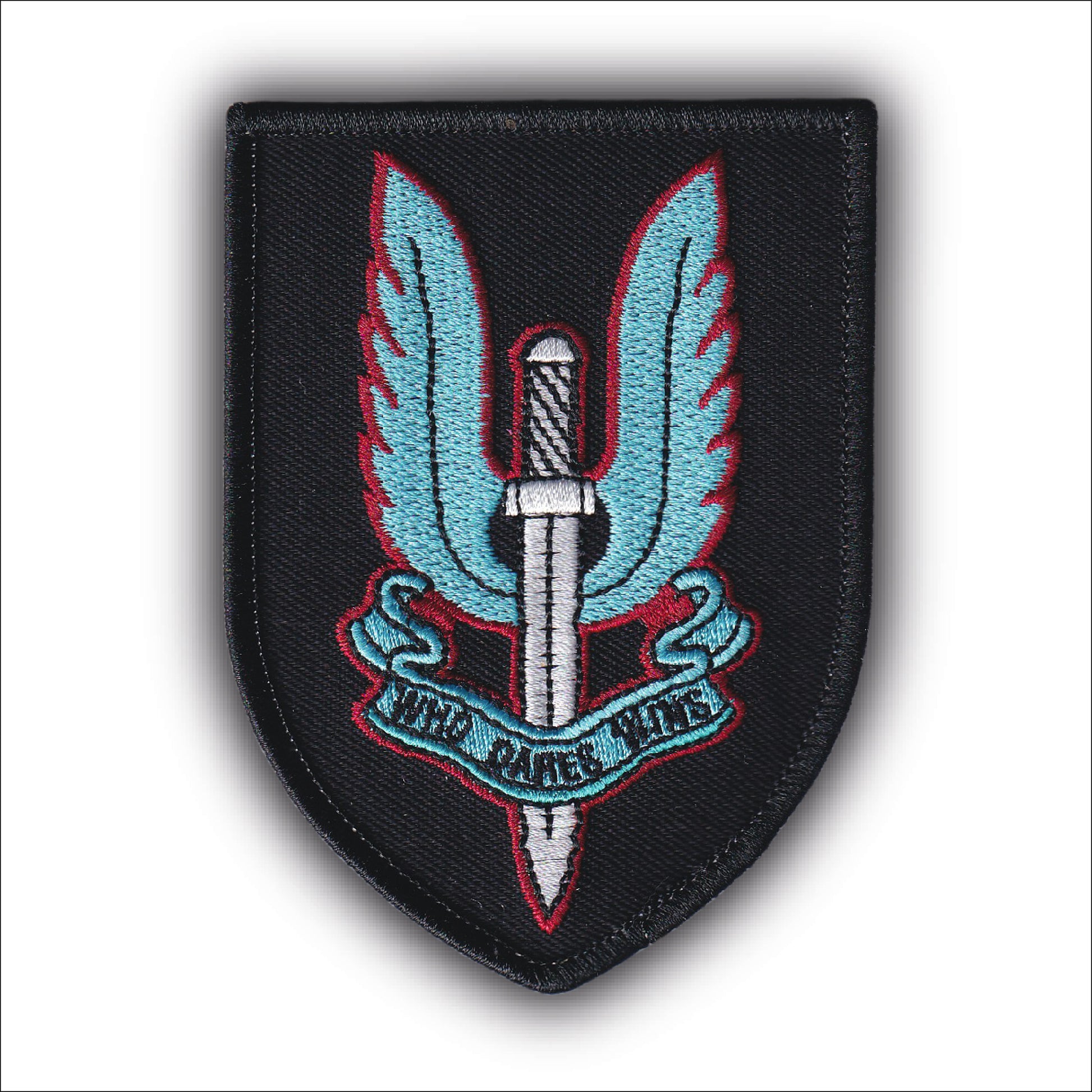MAXIMUMPATCHES - Ecusson Patch Brodé Thermocollant - Dim: 9 cm x 6,6 cm - Militaire Sas Who dare wins Royaume uni Britannique Force Spéciale Armée Cosplay Airsoft