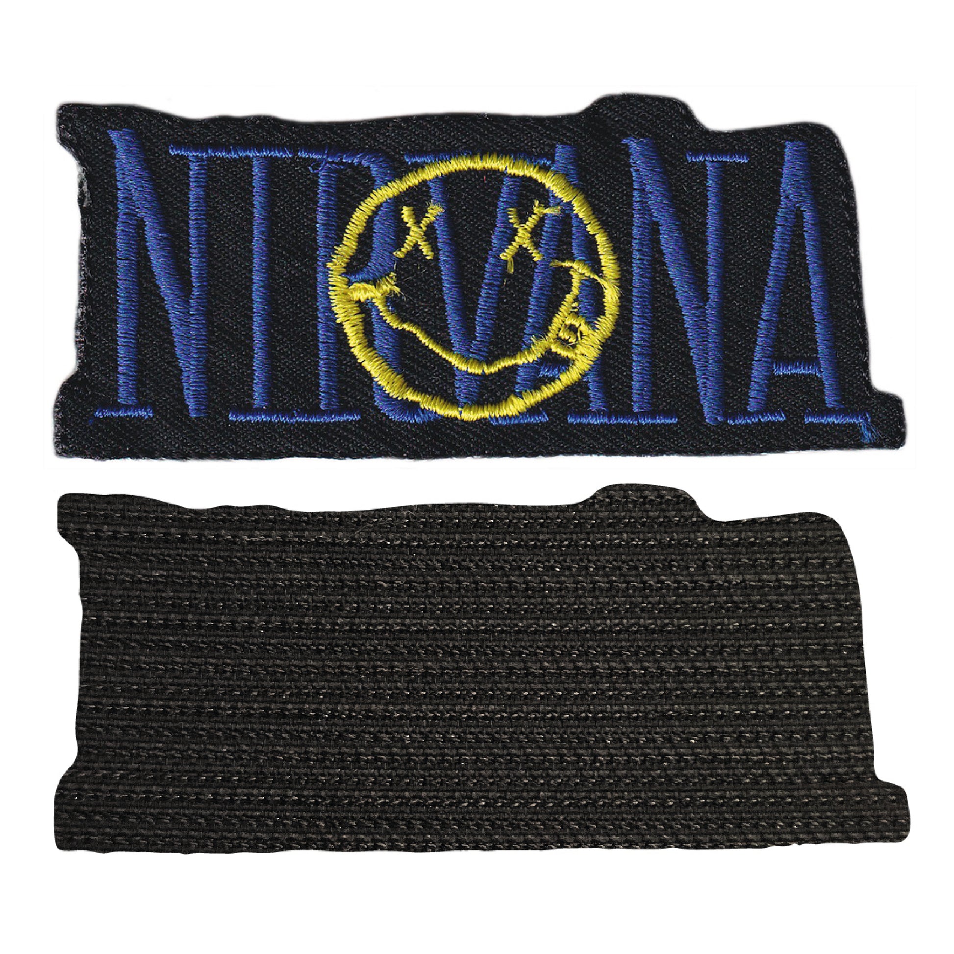 MAXIMUMPATCHES- Nirvana - 9,5 cm x 4 cm - Ecusson Patch Brodé avec Scratch Cousu Au Dos + Carré Scratch A Coudre, Face Opposé 10 cm x 10 cm/Groupe Musique Métal Rock Punk Heavy Trash Blues