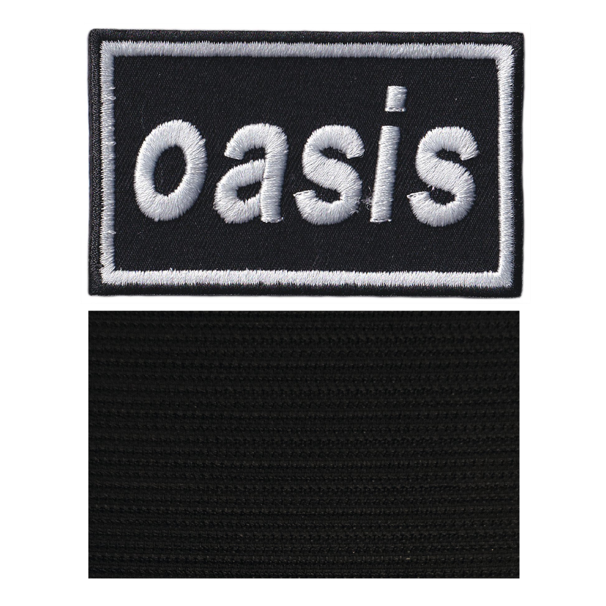 MAXIMUMPATCHES - Oasis - 8 cm x 4,8 cm - Ecusson Patch Brodé Avec Scratch Cousu Au Dos + Carré Scratch A Coudre, Face Opposé 10 cm x 10 cm/Groupe Musique Métal Rock Punk Heavy Trash Blues