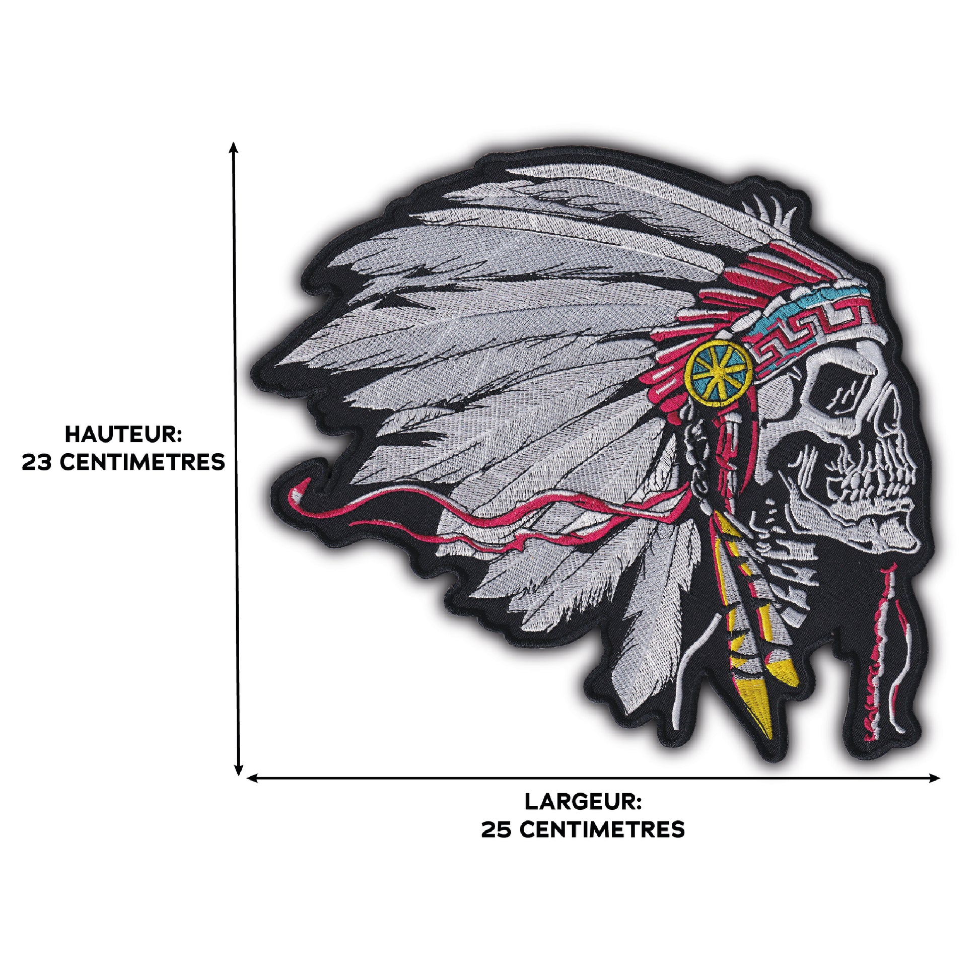 MAXIMUMPATCHES - Grand Ecusson De Dos Patch Brodé Thermocollant - Dim: 23 cm x 15 cm - Skull Chef Indien Country Indianiste Biker Motard Trike Usa Native Américan