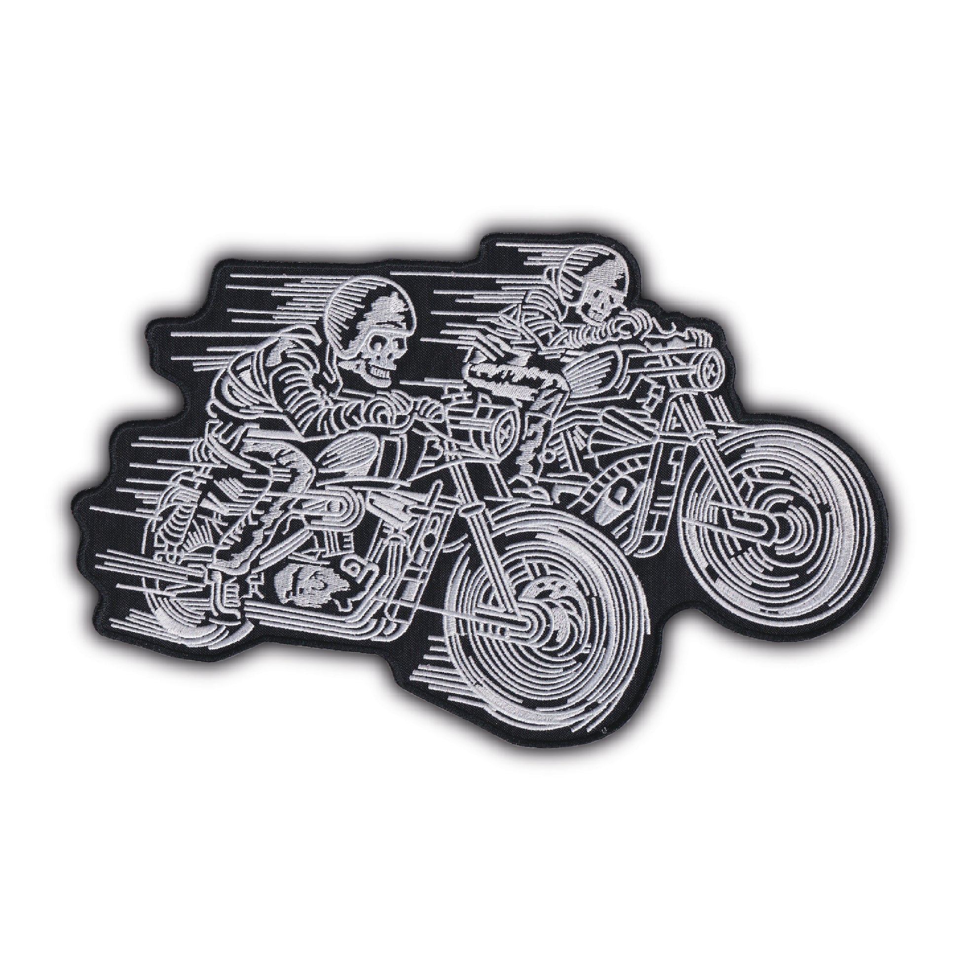 MAXIMUMPATCHES - Grand Ecusson De Dos Patch Brodé Thermocollant - Dim: 16 cm x 25 cm - Skull Moto Motard Biker Country Bobber Rock n Roll Rockabilly Crane