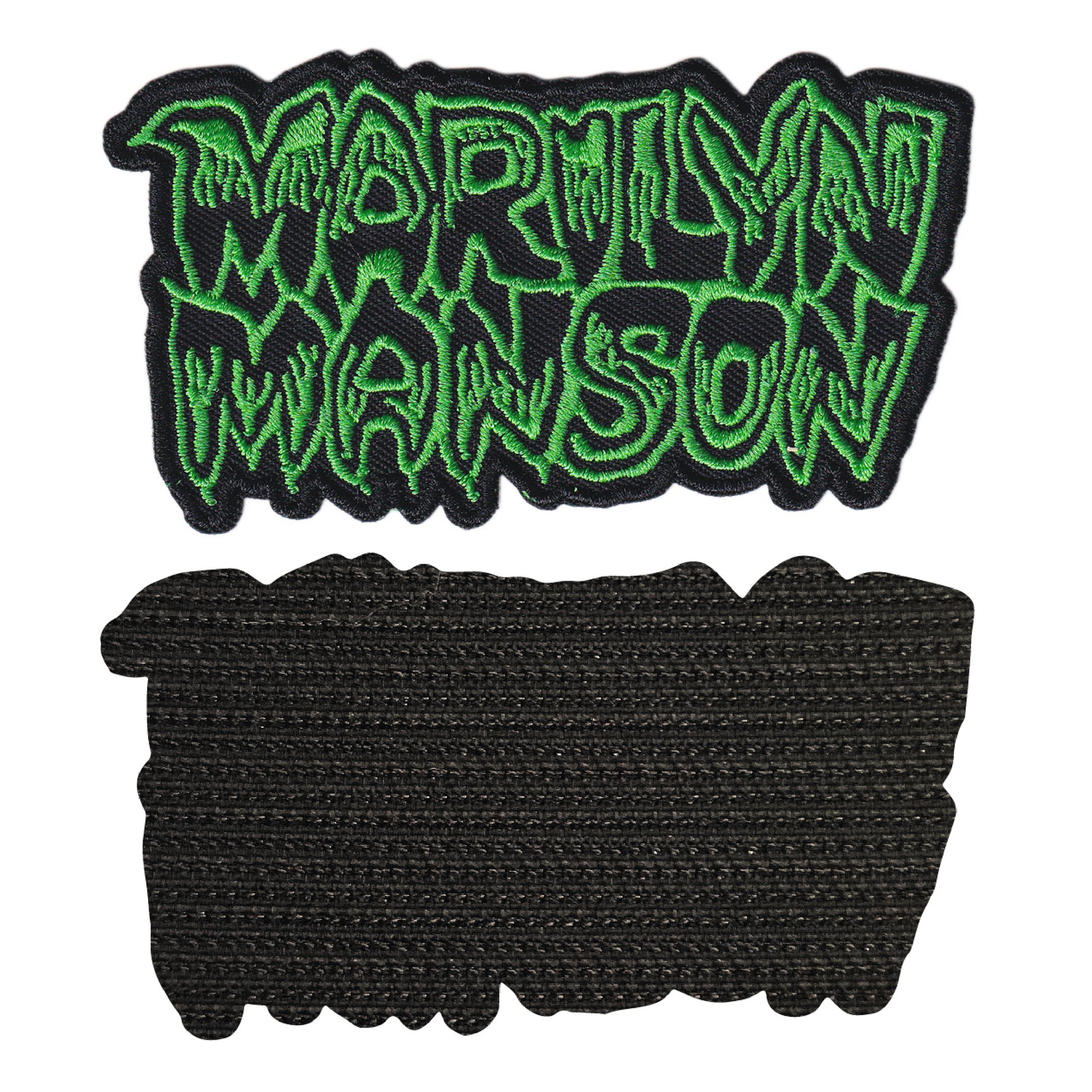 MAXIMUMPATCHES - Marilyn Manson - 10 cm x 5,5 cm - Ecusson Patch Brodé Avec Scratch Cousu Au Dos + Carré Scratch A Coudre, Face Opposé 10 cm x 10 cm/Groupe Musique Métal Rock Punk Heavy Trash Blues