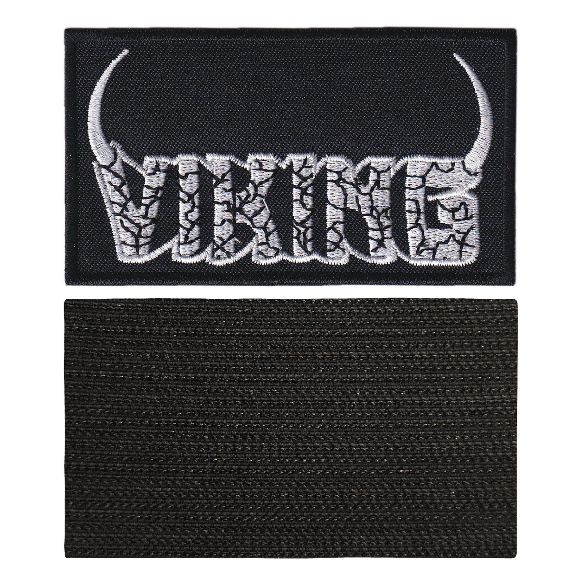 MAXIMUMPATCHES - Viking - 9 cm x 5 cm - Ecusson Patch Brodé Avec Scratch Cousu Au Dos + Carré Scratch A Coudre, Face Opposé 10 cm x 10 cm/Groupe Musique Métal Rock Punk Heavy Trash Blues