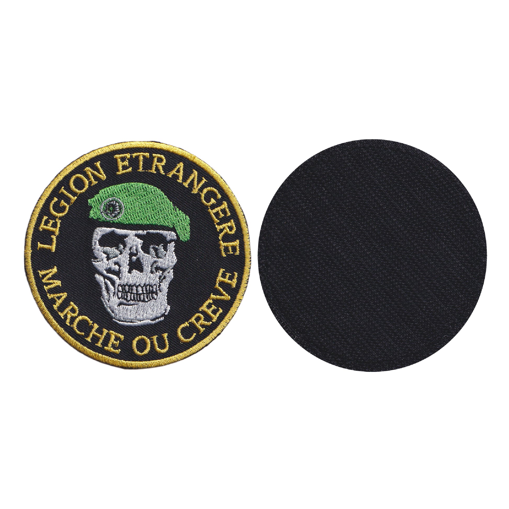 MAXIMUMPATCHES - Diametre 8 cm - Ecusson Patch Brodé Avec Scratch Cousu Au Dos + Carré Scratch A Coudre, Face Opposé 10 cm x 10 cm Offert/Militaire Légion Etrangere