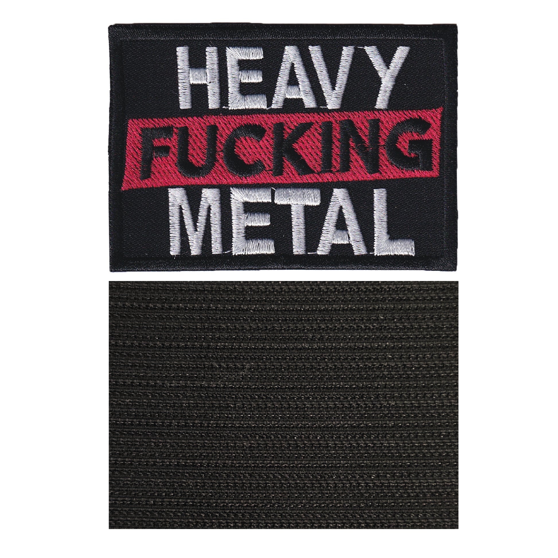 MAXIMUMPATCHES - Heavy Fucking Métal - 9 cm x 6,4 cm - Ecusson Patch Brodé Avec Scratch Cousu Au Dos + Carré Scratch A Coudre, Face Opposé 10 cm x 10 cm/Groupe Musique Métal Rock Punk Heavy Trash Blues