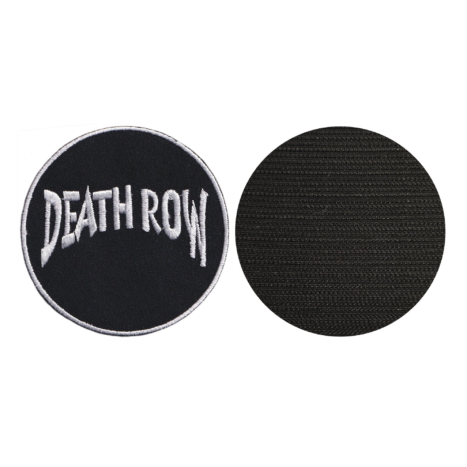 MAXIMUMPATCHES - Death Row - Diamètre 7,5 cm - Ecusson Patch Brodé Avec Scratch Cousu Au Dos + Carré Scratch A Coudre, Face Opposé 10 cm x 10 cm/Groupe Musique Métal Rock Punk Heavy Trash Blues