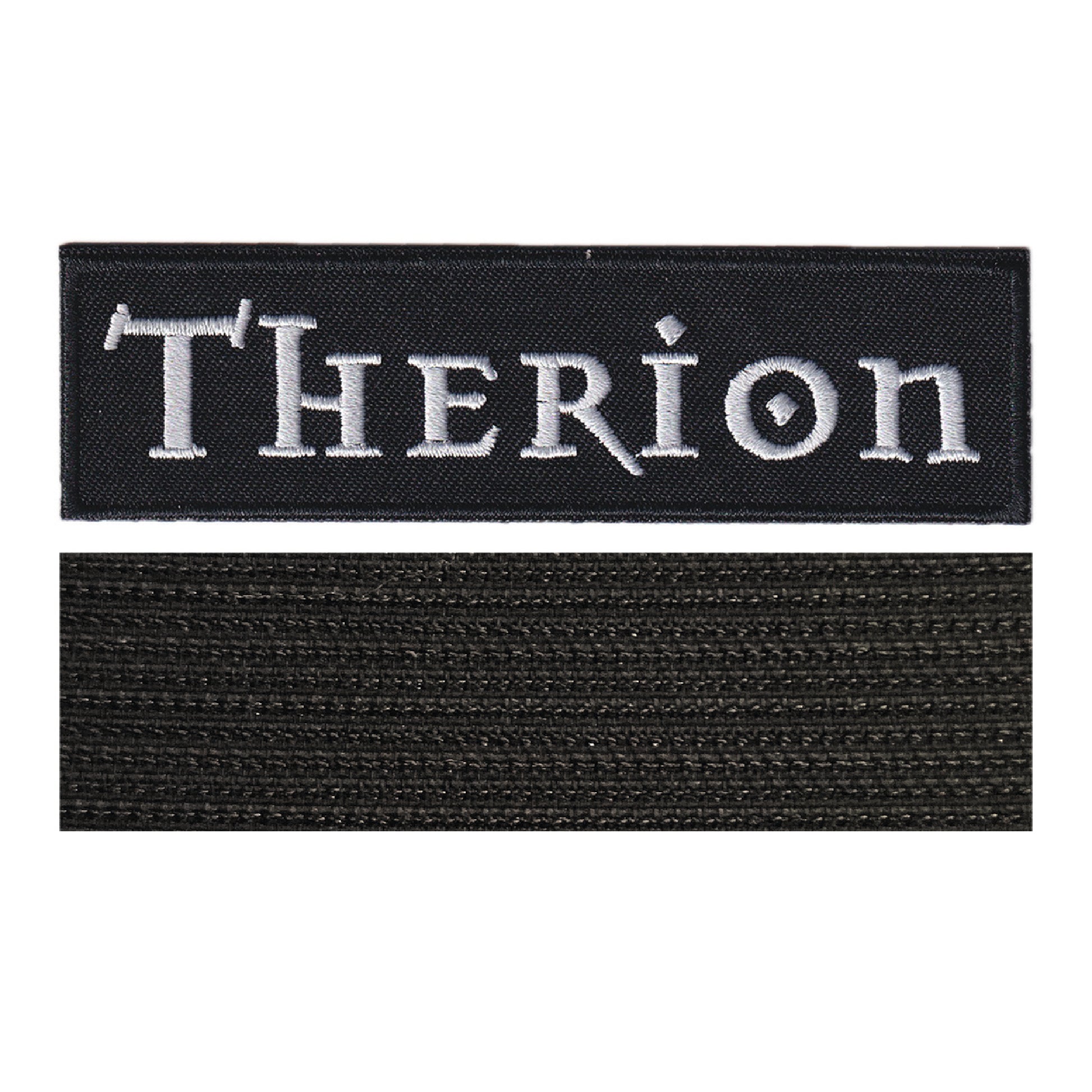MAXIMUMPATCHES - Therion - 11 cm x 3 cm - Ecusson Patch Brodé Avec Scratch Cousu Au Dos + Carré Scratch A Coudre, Face Opposé 10 cm x 10 cm/Groupe Musique Métal Rock Punk Heavy Trash Blues
