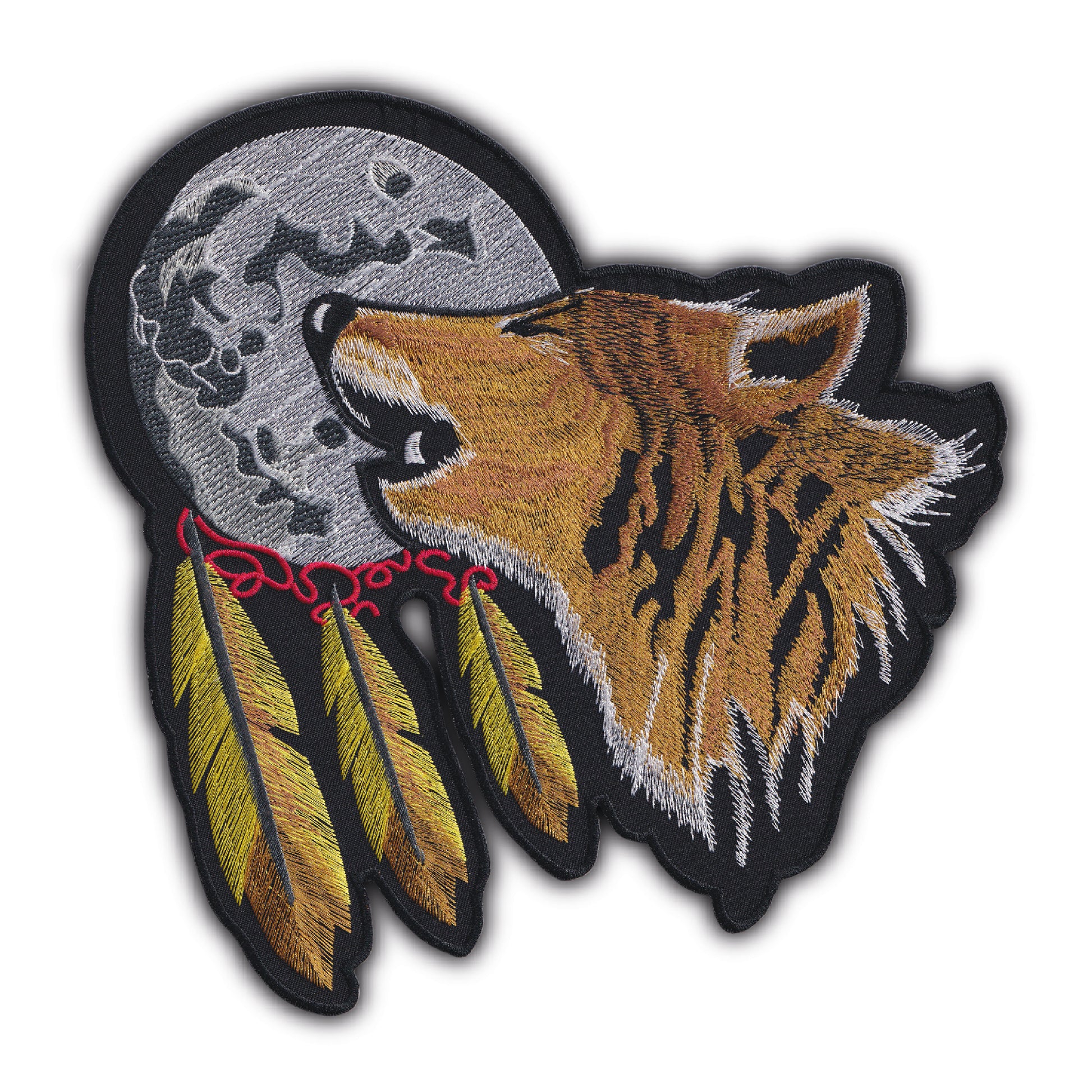 MAXIMUMPATCHES - Grand Ecusson De Dos Patch Brodé Thermocollant - Dim: 24 cm x 24,50 cm - Loup Lune Attrape Rêve Country Biker Moto Motard Trike