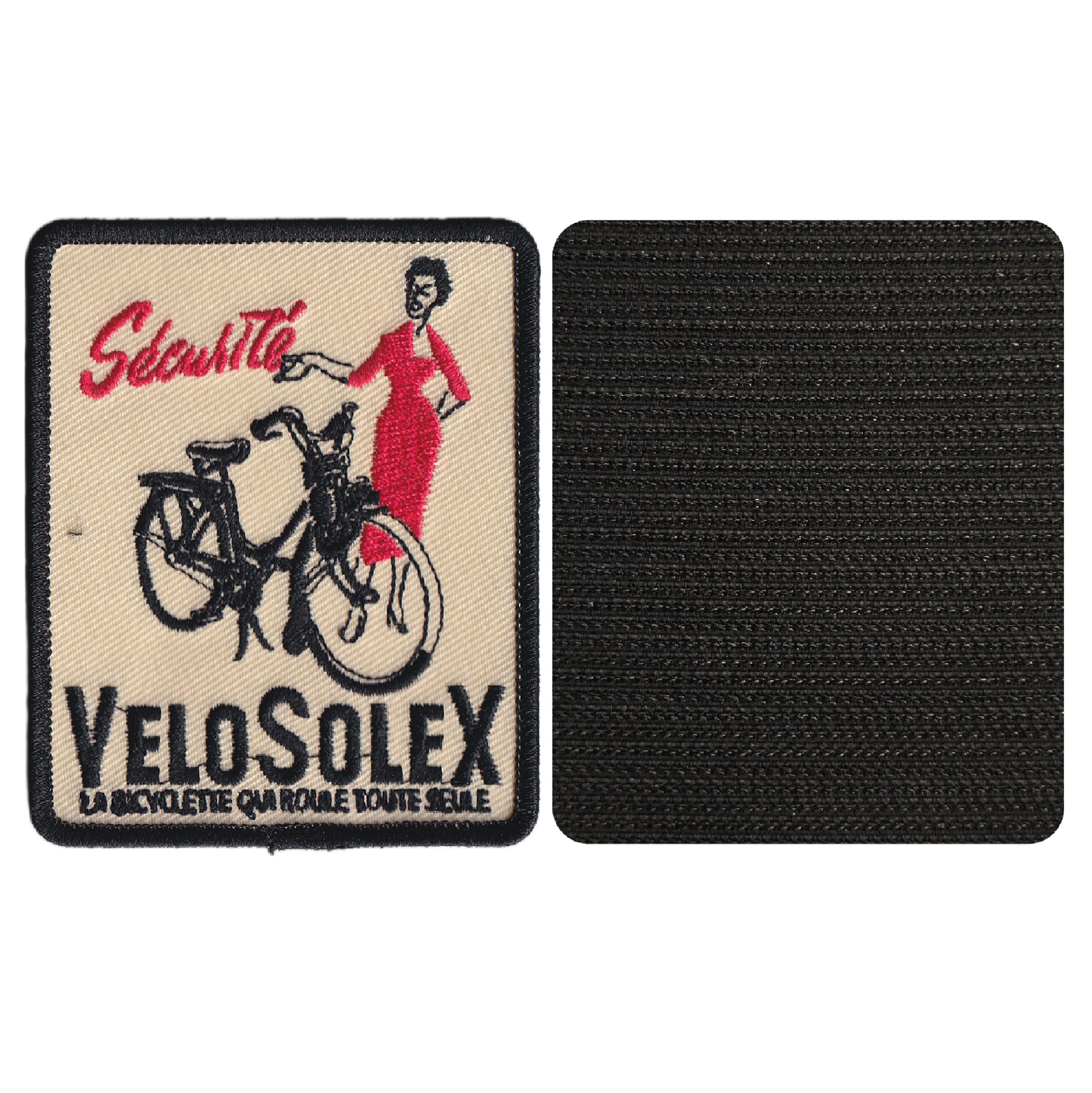 MAXIMUMPATCHES - 7,3 cm x 9 cm - Ecusson Patch Brodé Avec Scratch Cousu Au Dos + Carré Scratch A Coudre, Face Opposé 10 cm x 10 cm / Cyclomoteur Vélomoteur Sécurité Vélosolex Femme