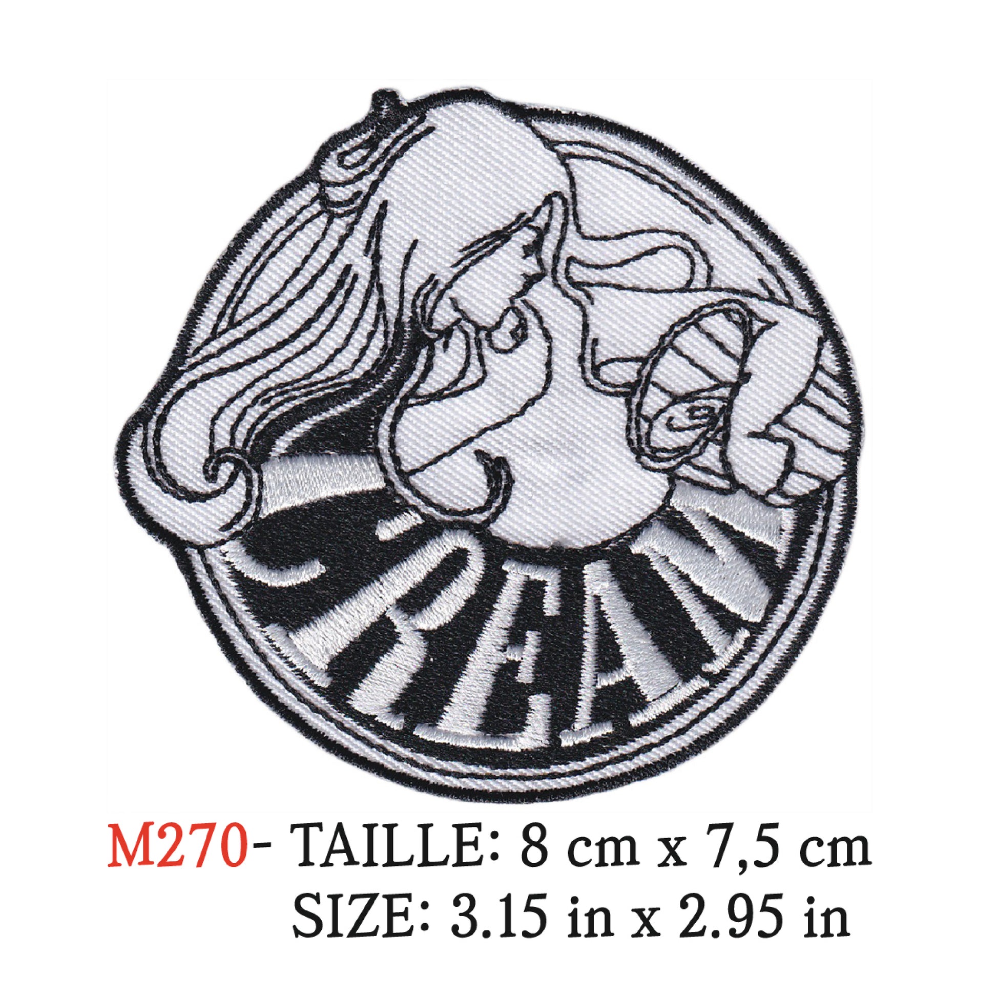 - La dimension de l'écusson, exprimé en centimètre se trouve dans le titre de la fiche produit