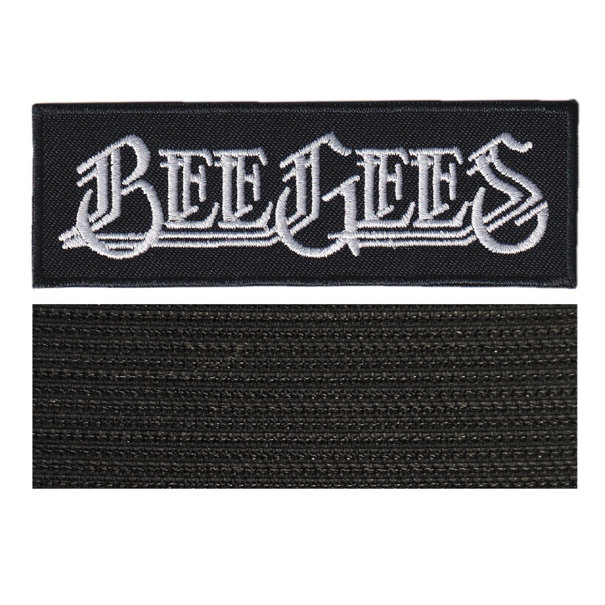 MAXIMUMPATCHES - Beegees - 10 cm x 3,4 cm - Ecusson Patch Brodé Avec Scratch Cousu Au Dos + Carré Scratch A Coudre, Face Opposé 10 cm x 10 cm/Groupe Musique Métal Rock Punk Heavy Trash Blues