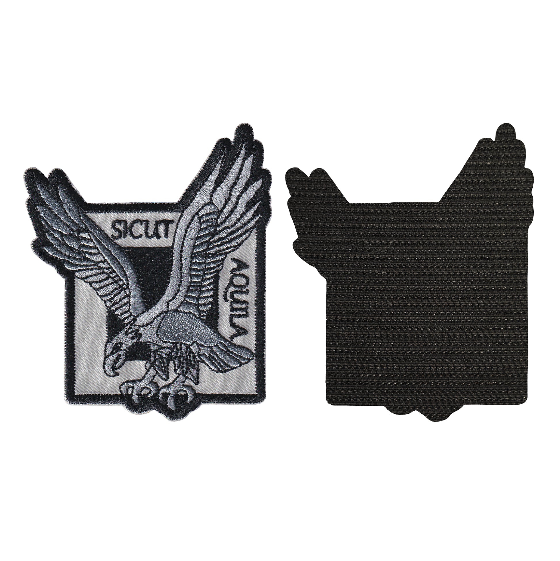 MAXIMUMPATCHES - Dim: 9 cm x 7,5 cm - Ecusson Patch Brodé Avec Scratch Cousu Au Dos + Carré Scratch A Coudre, Face Opposé 10 cm x 10 cm Offert/Parachutiste Sicut Aquila Militaire